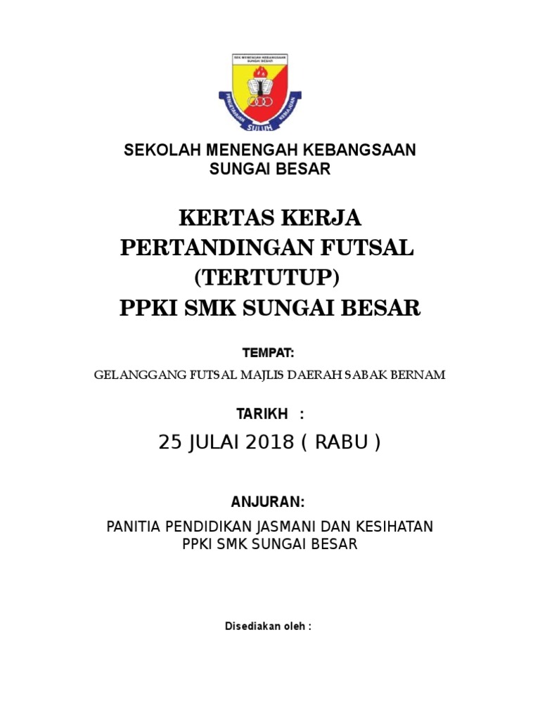 Kertas Kerja Pertandingan Futsal. For more information about the DTS Futsal Classes please contact our DTS Futsal Director. TAJUK Pertandingan Terbuka Futsal Prauniversiti SMK Sultan Abdul Jalil 2019 2.
